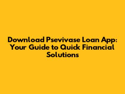 Download Psevivase Loan App: A Comprehensive Guide