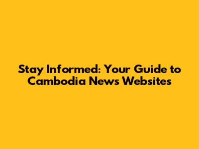 Stay Informed: Your Guide To Cambodia News Websites